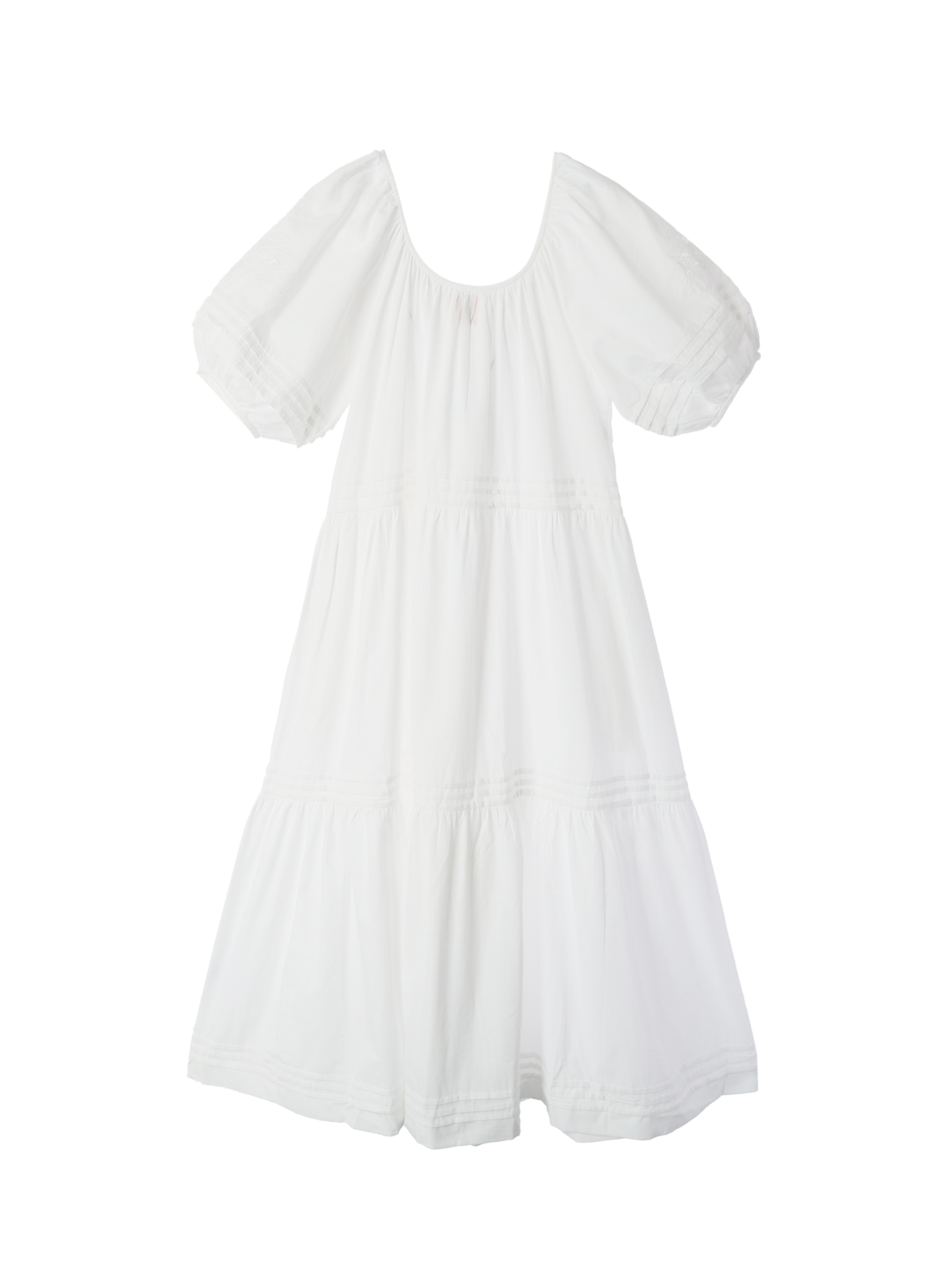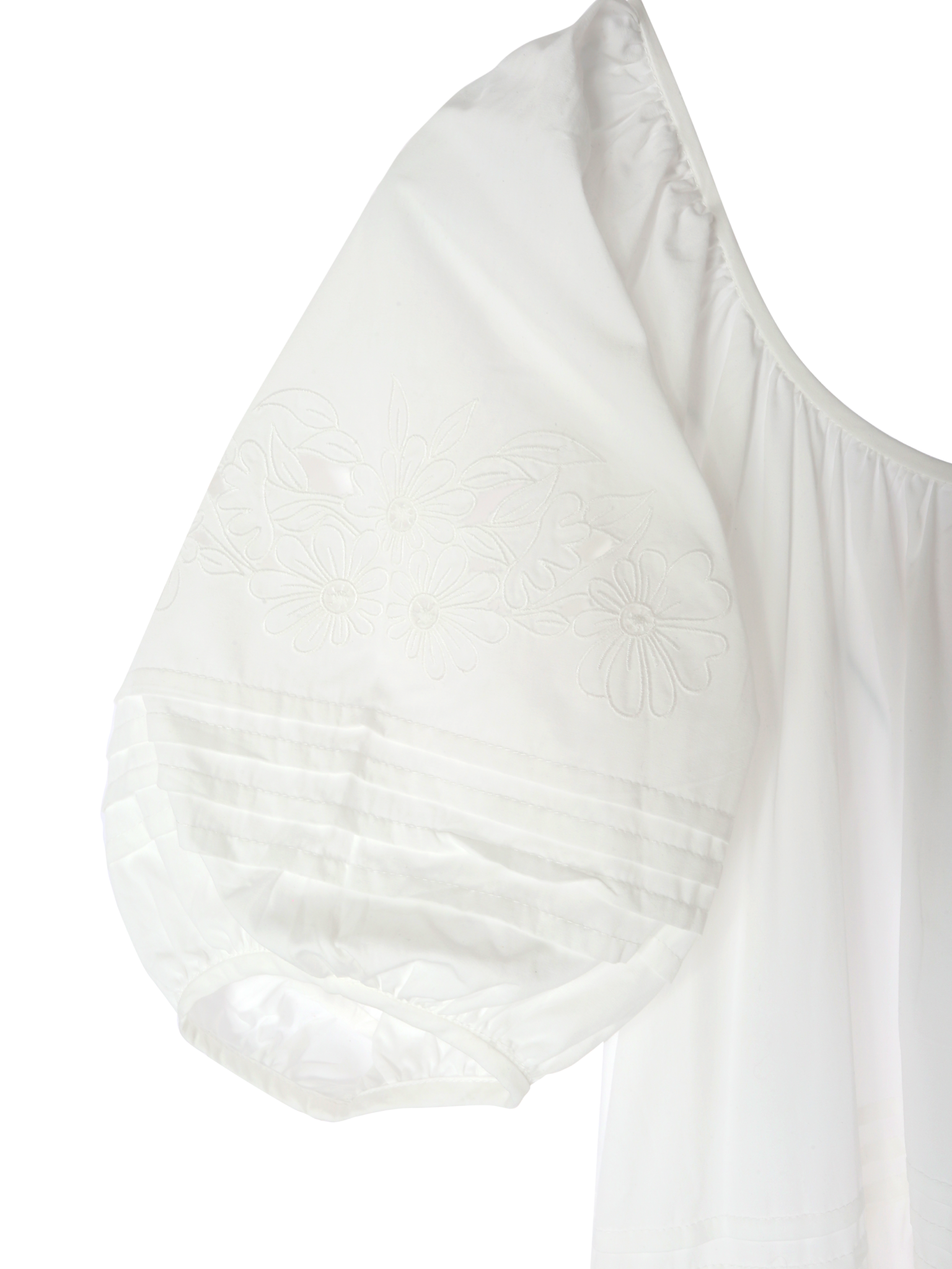 袖にあしらったお花の刺繍とピンタックが