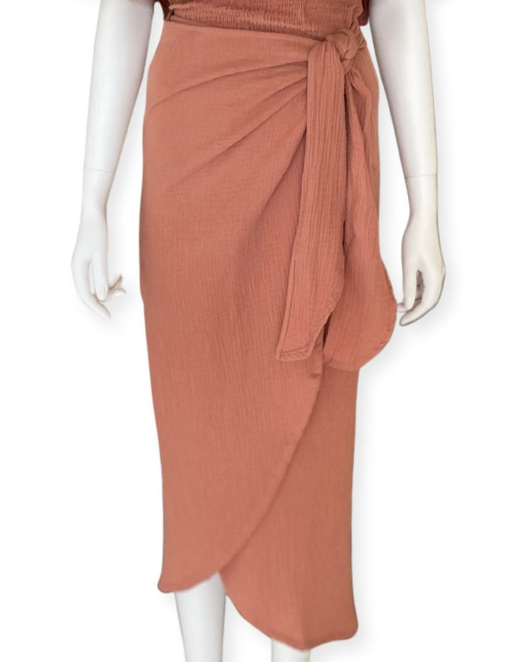 シワ加工のガーゼCotton100%で仕上げたラップスカートは